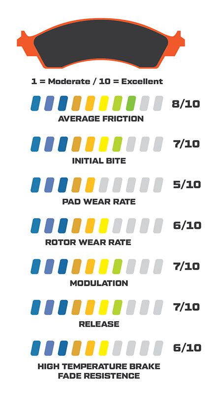 - Medium friction pad, highest effective temperature range in medium temperature pad group